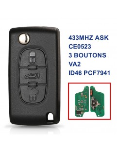 13,80 €Clé télécommande compatible Peugeot Citroën ce0523 (pile circuit) modulation de fréquence ASK lame va2