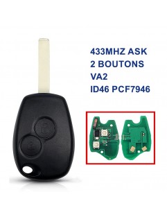 Clé télécommande compatible Renault Dacia 2 boutons id46 pcf7946 lame va2